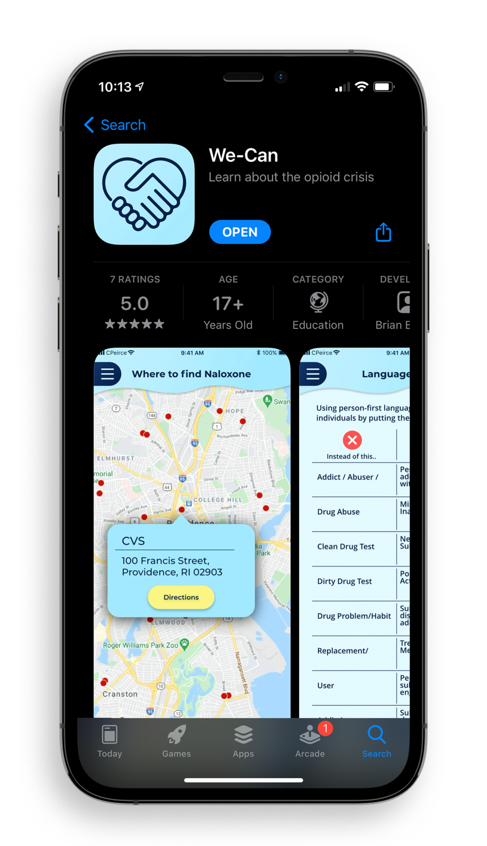 WeCan is an app designed to provide our community with education on substance abuse disorders, overdoses, and the proper administration of Naloxone. The app presents de-stigmatizing education via explanations, descriptions, and infographics, with corresponding voice narrations.